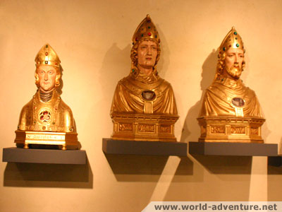 W północnej części znajduje się skarbiec do którego wchodzi się przez XV w. krużganek. Znajdują się w nim zbiór kielichów i przedmiotów liturgicznych oraz licznych relikwiarzy, z których najciekawszy jest relikwiarz, św. Serwacego w kształcie popiersia, ozdobiony płaskorzeźbami scen z życia świętego.