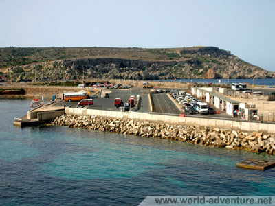Widok z promu dopływającego do portu w Cirkewwa na wyspie Malta.