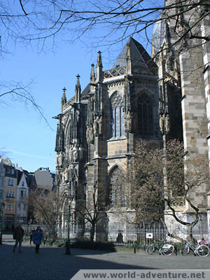 Katedra była sukcesywnie rozbudowywana, tak by sprostać ogromnemu napływowi pielgrzymów przybywających do Akwizgranu, by oddać cześć tzw. Wielkim Relikwiom Akwizgrańskim oraz Karolowi Wielkiemu, kanonizowanemu przez antypapieża w roku 1165. W latach 1355-1414 wzniesiono gotyckie prezbiterium, wzorowane na Sainte-Chapelle w Paryżu.