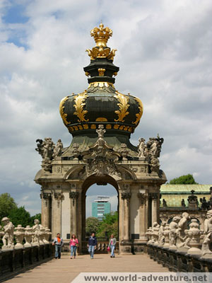 Brama Kronentor została wzniesiona w latach 1714-18 i jest jednym z najlepszych architektonicznych perełek Zwingera, której sam kompleks pałacowy zawdzięcza swoją światową sławę.