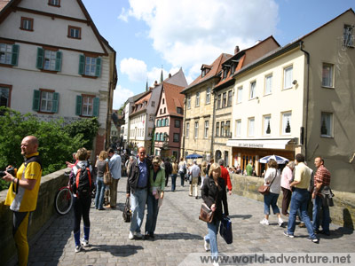 Główna ulica prowadząca do Starego Ratusza na rzece w Bamberg.