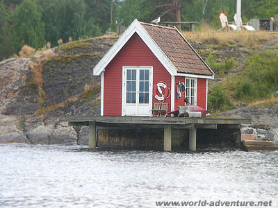Będąc w Norwegii można się zdziwić, dlaczego tak wiele domów jest pomalowane na ciemno ceglany kolor. Jedna osoba wytłumaczyła mi, że w Norwegii znajduje się kopalnia, której jednym ze składników ubocznych jest właśnie pył o takim kolorze. Ktoś wpadł na pomysł żeby wykorzystać go do produkcji farby. Środek ten doskonale konserwuje drewno, jest tani i bardzo dobrze prezentuje się na norweskich domach, które najczęściej są drewniane :-)