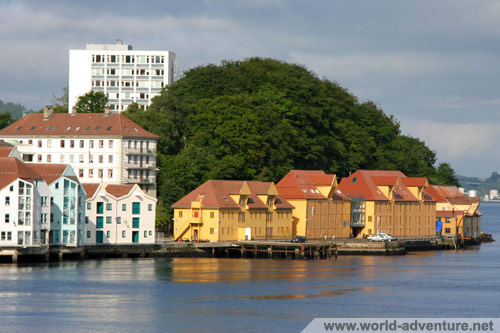 Patrząc od strony Bergenhus(ze strony widocznej na zdjęciu poprzednim) na drugą stronę wejścia morskiego do Bergen widać blisko nad brzegiem położone domy. Myślę, że gdzieś za tym białym wysokim budynkiem powinno się znajdować oceanarium.