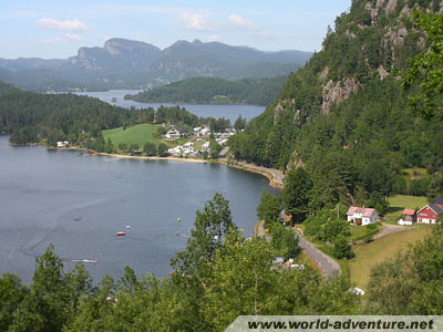 Okolice Egersund. W tym miejscu można serfować. Miedzy brzegami rozstawione są słupy na których zawieszona jest lina ciągnąca surferów. Szkoda ze nie miałem czasu, żeby spróbować tego sportu ;-)