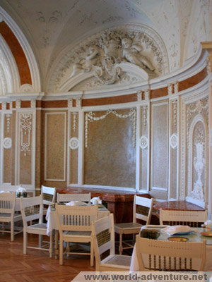 Goście Centrum Terapii Nerwic - poza doskonale wyposażoną bazą terapeutyczną, leczniczą i rehabilitacyjną - korzystają ze stylowo wyposażonych wnętrz: jadalni, kawiarni, galerii, biblioteki i kaplicy zamkowej, która pełni rolę sali koncertowej.