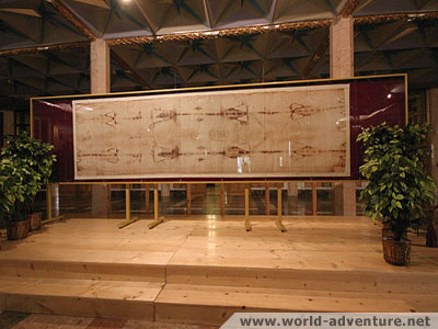 Całun Turyński jest płatem płótna długim na 436 cm i szerokim na 110 cm. Według tradycji chrześcijańskiej, tkaniną tą owinięto ciało Jezusa, gdy składano je do grobu. Na płótnie widnieje odzwierciedlenie całego ciała mężczyzny, ze śladami ran na rękach, nogach, twarzy - włącznie ze skaleczeniami o cierniowej koronie.