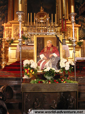 Obraz Jana Pawła II umieszczony przed ołtarzem bazyliki św. Stanisława i św. Wacława na Wawelu kilka dni po jego śmierci.